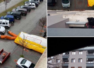 (ФОТО) Девојка сакала да скокне од зграда во Карпош, ја спасиле специјалци и пожарникари